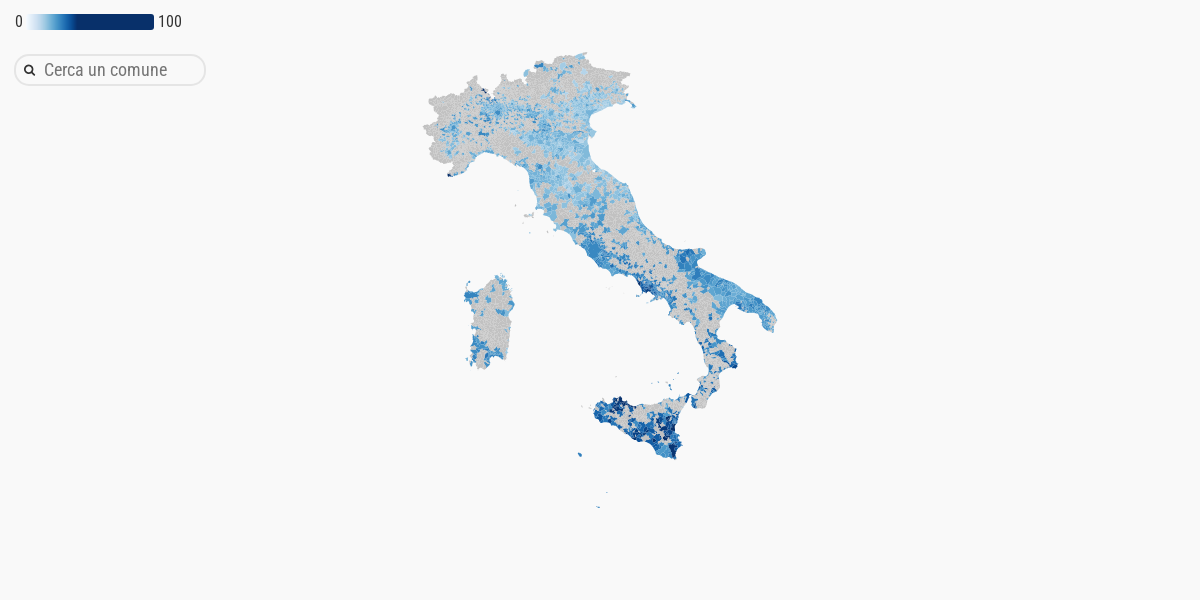 I dati, diffusi solo per i comuni con più di 5.000 abitanti, mostrano la percentuale di iscritti in anagrafe di 15-29 anni che non hanno un’occupazione regolare ad ottobre e non seguono un percorso di studio. Si tratta di una proxy dell’indicatore sui Neet (giovani che non studiano, non lavorano e non sono in formazione).